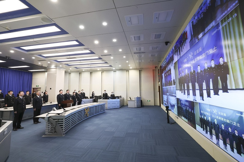 1月26日,海关总署党委书记、署长俞建华带领党委委员,与东乌、额尔古纳、丹东、黑河、红其拉甫、狮泉河、孟定、爱店8个海关进行视频连线,了解边境口岸监管通关情况,对坚守边关一线的海关干部职工进行春节慰问。在京署领导王林、吕伟红、赵增连、李魁文参加。