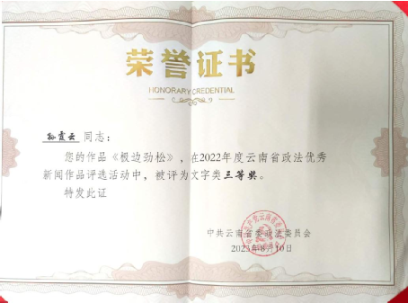 孙霞云作品《极边劲松》获云南省政法优秀新闻作品评选文字类三等奖。