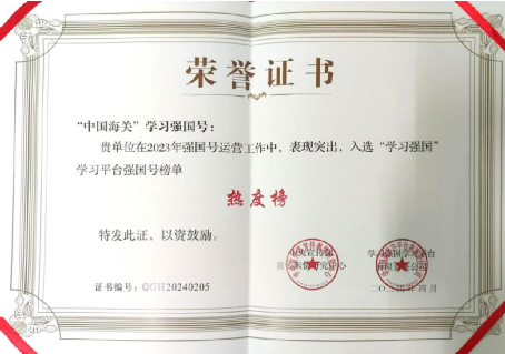 “中国海关”学习强国号入选2023年“学习强国”学习平台强国号榜单热度榜。