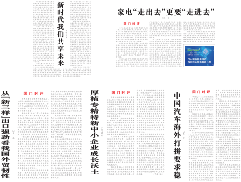 在“国门时评”栏目刊发外经贸系列评论文章。