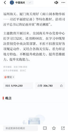 不断提升融媒体产品传播效果,持续推进媒体融合创新,《中国国门时报》与新媒体平台相互呼应,对共建“一带一路”高质量发展、海关落实rcep政策优惠、推动智慧海关建设和“智关强国”行动等重点选题实行协同报道、同频共振,强化融媒体报道集群效应。发布的《全国海关学习贯彻习近平新时代中国特色社会主义思想主题教育动员会在京召开》等文章被“学习强国”平台pa凯发国际登录首页、主题教育专栏pa凯发国际登录首页采纳推荐,累计阅读量达834万、点赞量超过40万;《主题教育 | 广州海关:奔着问题去 抓住难题改》被“学习强国”平台pa凯发国际登录首页推荐,并收录至主题教育专题,阅读量超过671万。“学习强国”平台将“中国海关”学习强国号列入首推区域,在平台推荐目录中,“中国海关”学习强国号位居第二,排名仅次于新华社。