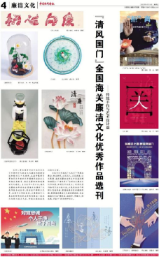 “文化”专版刊发海关文化优秀作品和消息动态,持续加大海关廉政文化作品刊发力度。