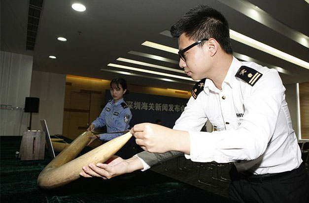 2018年6月25日,在海关总署缉私局统一指挥和广东分署缉私局统筹协调下,深圳海关缉私局联合湛江、福州等海关缉私局及茂名市公安局开展“404”象牙走私案收网行动,出动警力160名,分成23个行动小组在广东、福建等地抓获犯罪嫌疑人10名,查获象牙46.7千克,查证涉嫌走私象牙、犀牛角合计约1吨。经深挖扩线,同年7月2日,联合香港海关开展“控制下交付”,在香港抓获犯罪嫌疑人7名,查获象牙277千克。