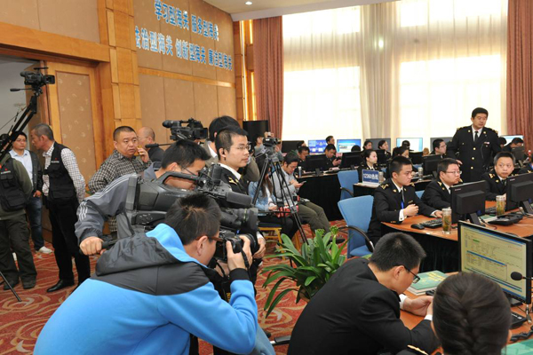 4月27日,青岛海关举行丝绸之路经济带海关区域通关一体化改革应急协调中心“媒体开放日”活动,邀请50多家中央省市及港澳媒体记者走进应急协调中心,近距离感受海关业务改革。