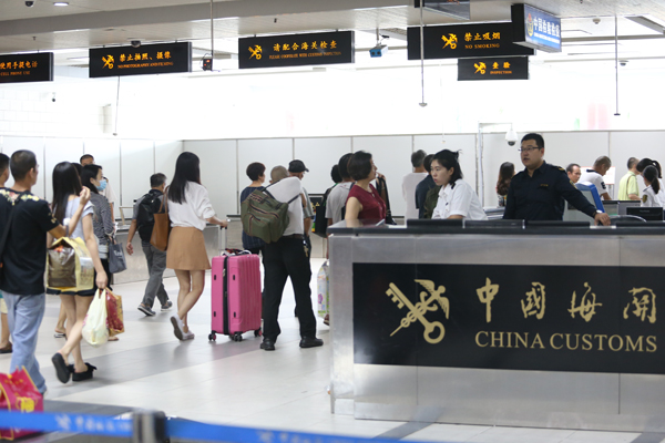 图为:海关关员现场为旅客答疑解难 王震/摄