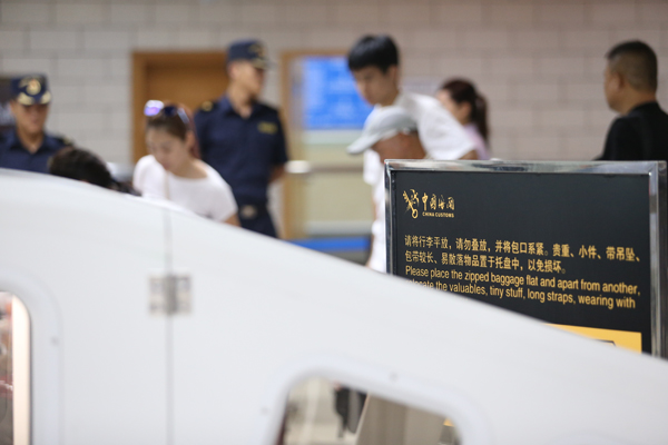 图为:拱北海关关员查验旅客随身携带物品 王震/摄